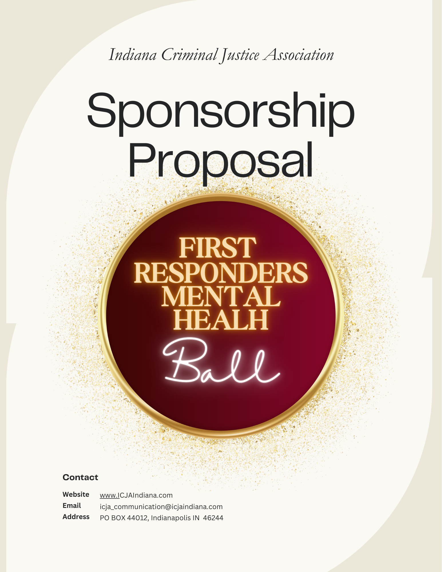 those who serve our communities with dedication, resilience, and integrity. Through your partnership with the Indiana Criminal Justice Association (ICJA), you help make the First Responders Ball possible while advancing ICJA’s mission to promote leadership, wellness, professional development, and recognition across Indiana’s justice system.